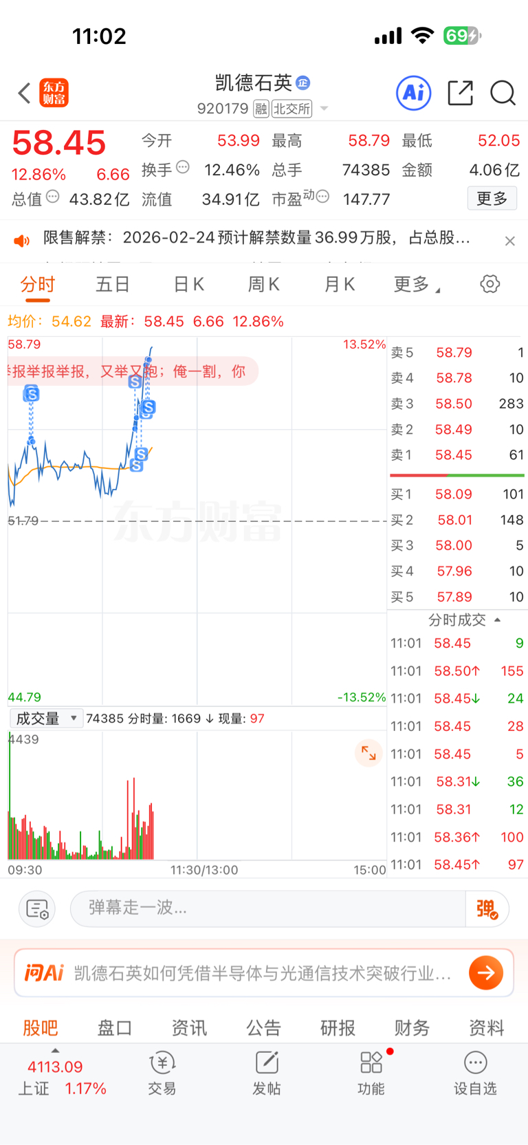 $凯德石英(SZ920179)$ 我承认卖的丑一批,留5万底仓,等回调在杀进去