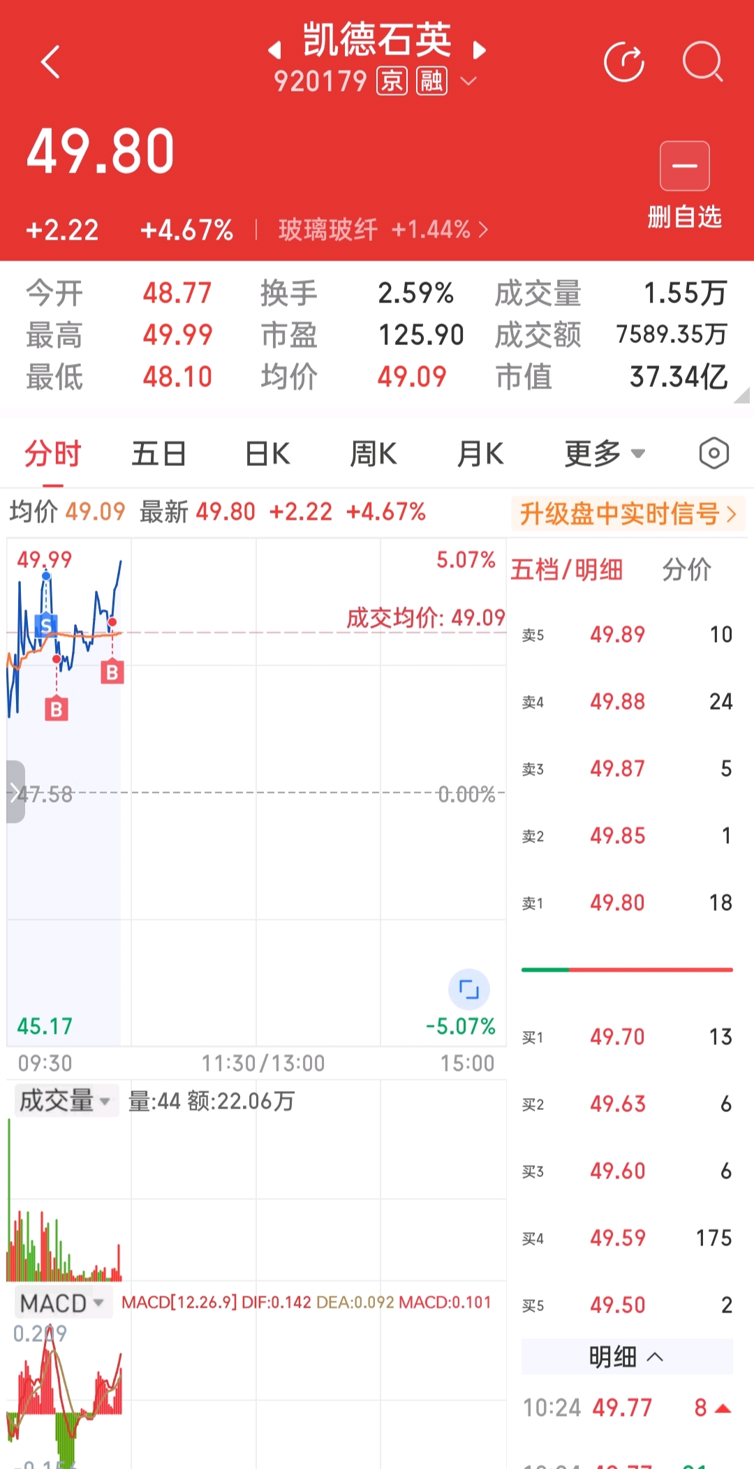$凯德石英(SZ920179)$ 石英股份涨停了,融资盘也洗出去了,冲