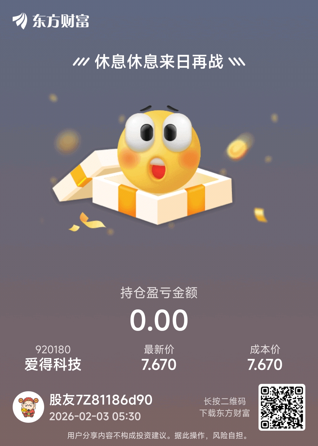 温馨提示: 1.根据《证券法》规定,禁止编造、传播虚假信息或者误导性信息,扰乱证券市场;2.用户在本社区发表的所有资料、言论等仅代表个人观点,与本网站立场无关,不对您构成任何投资建议。用户应基于自己的独立判断,自行决定证券投资并承担相应风险。《东方财富社区管理规定》