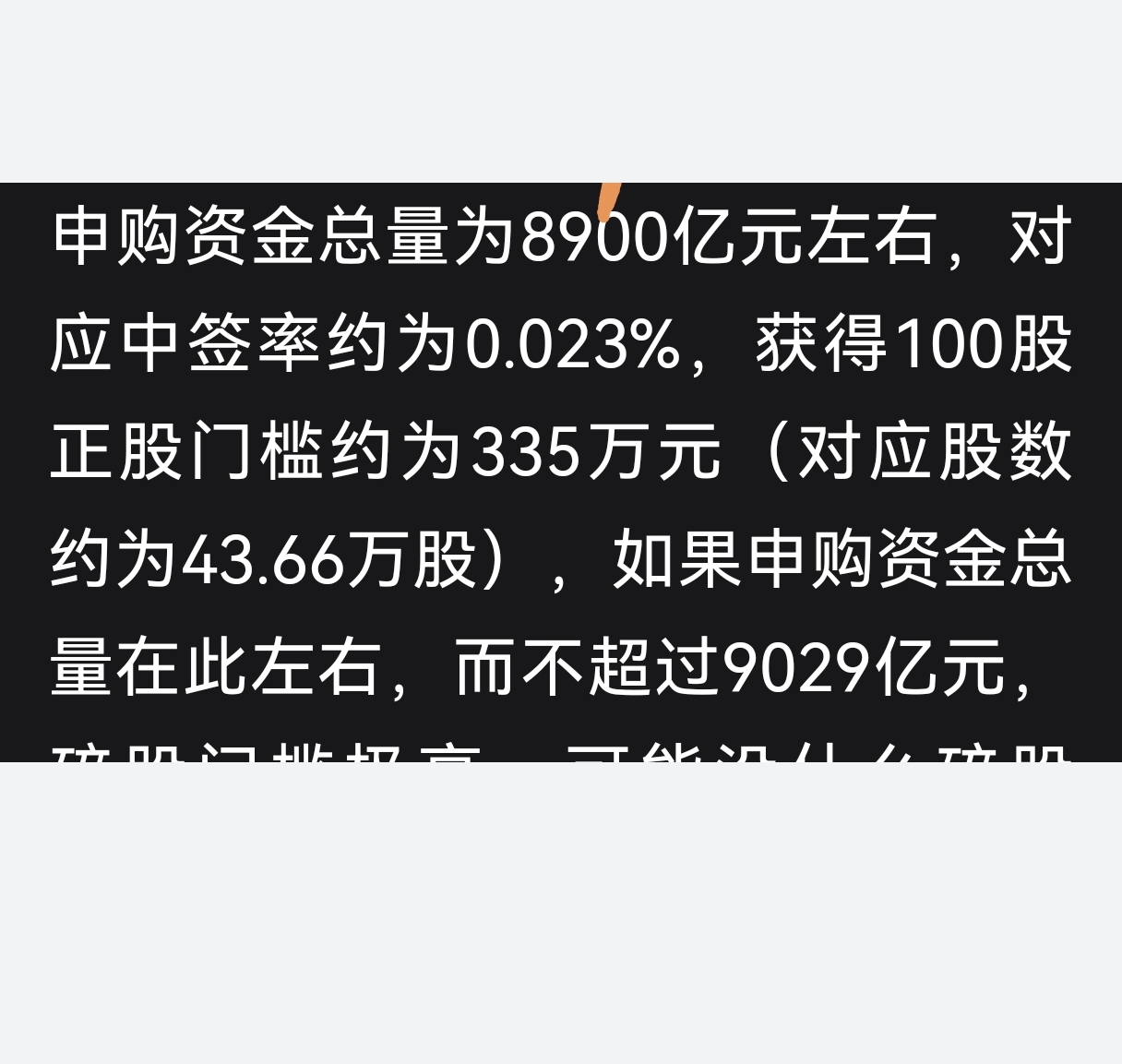 顶格3+1,申购资金总量未超过9029亿元。100正股低至339万元以下,与预测
