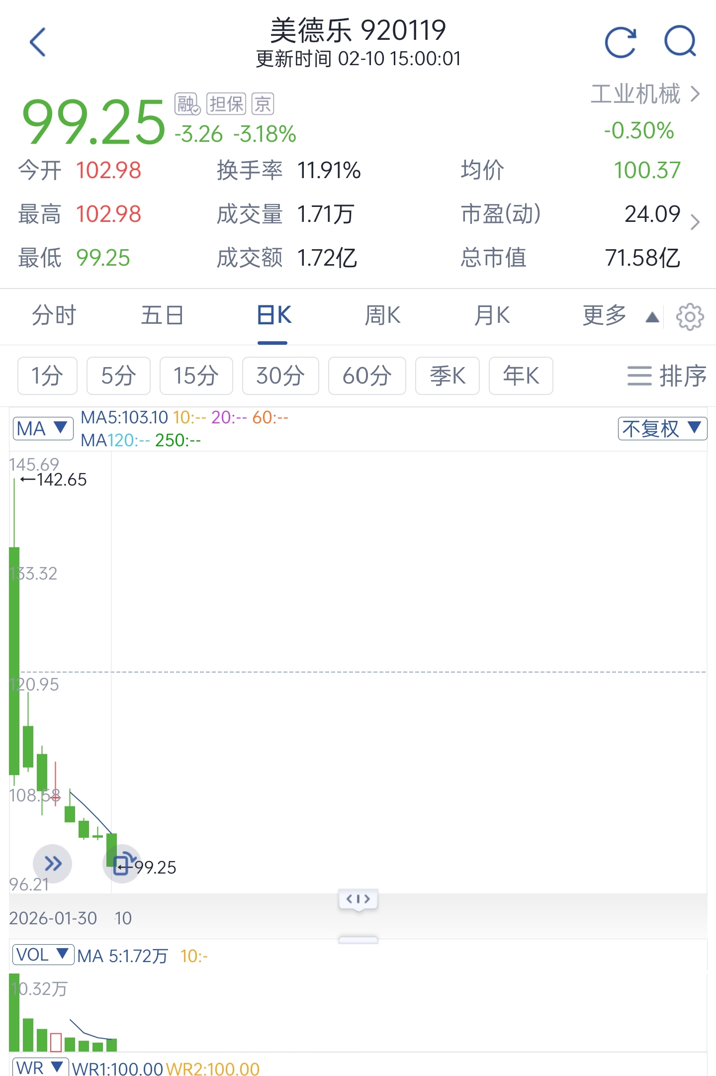 对于今天买入的选手来说,真能按照美德乐这个走势那就庆幸吧,至少第二天还有冲高减亏出逃的机会;很多都是第二天跳空低开低走,你会更难受。