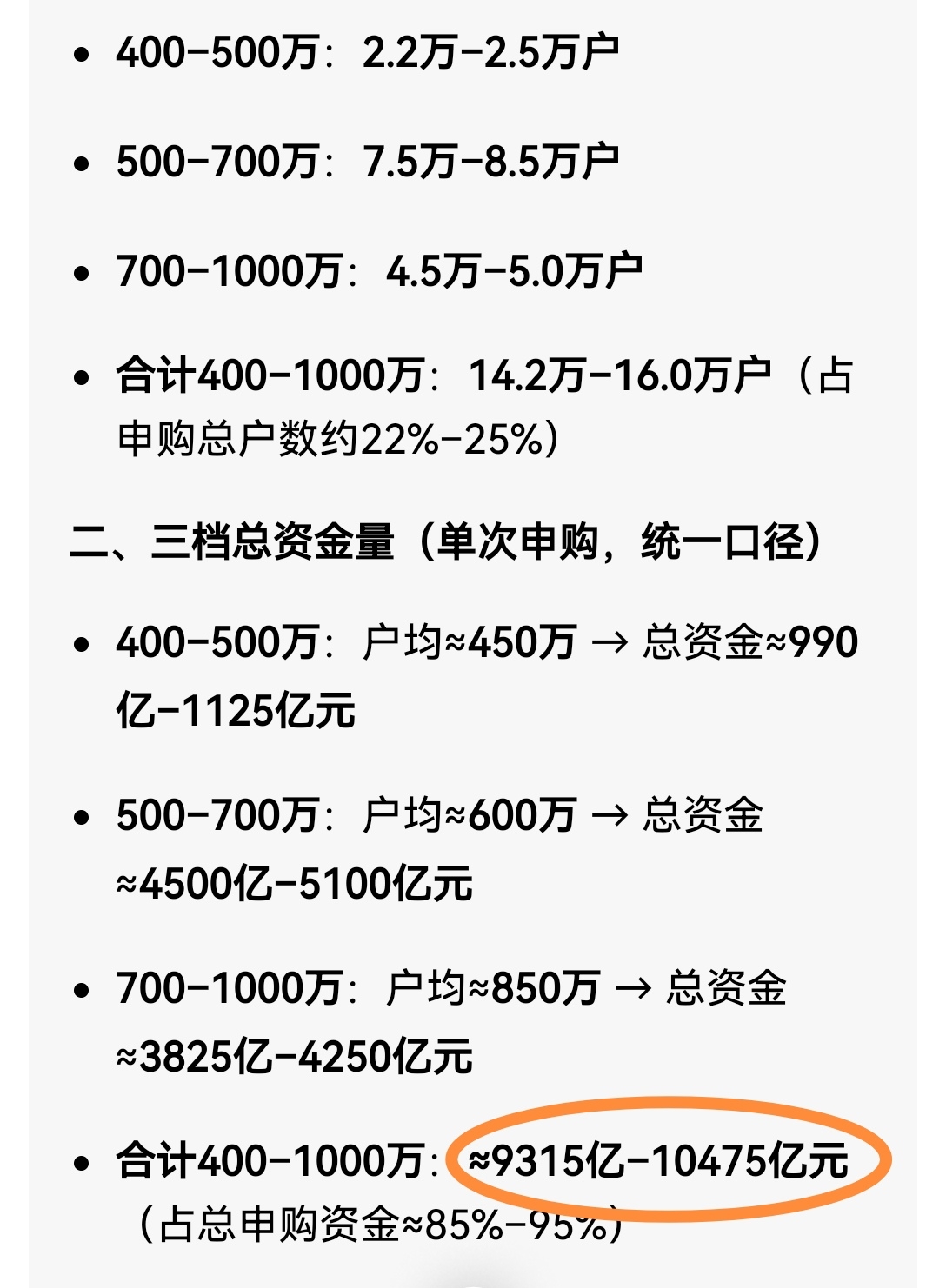 大数据分析,400万-1000万人是申购主力军,资金量超9000亿,人人碎股是事