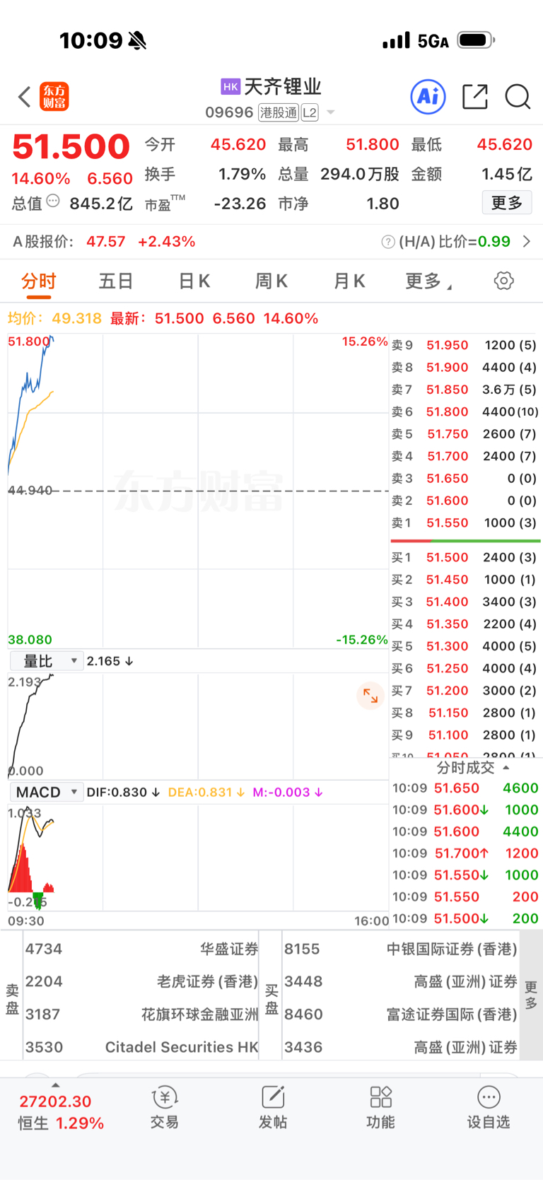 目前天齐锂业15个点,赣锋锂业11个点
