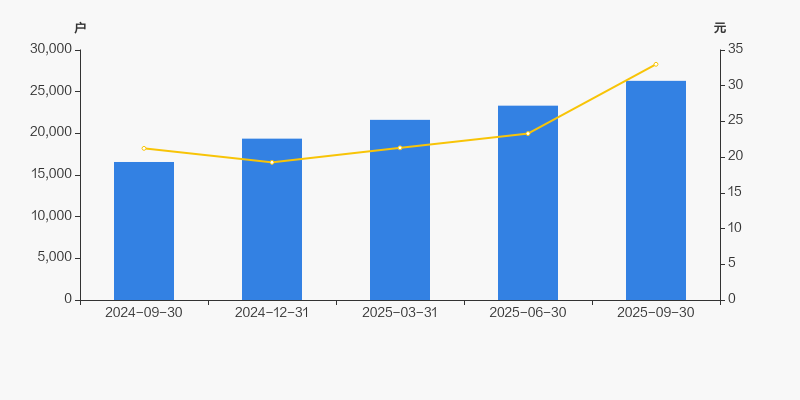 2024年9月30日至今,公司股东户数显著大幅增长,区间涨幅达58.79%。2024年9月30日至2025年9月30日区间股价上涨55.43%。
