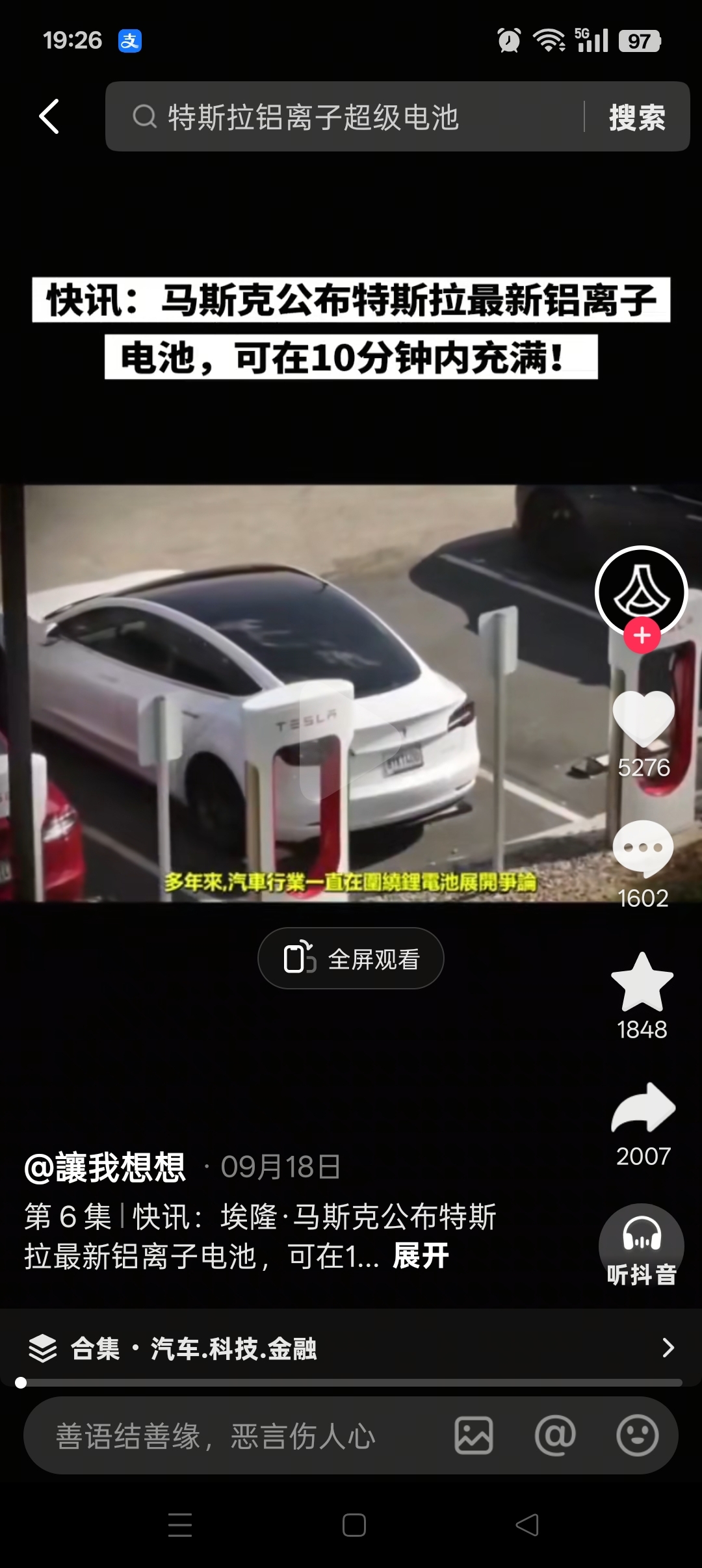 你们知道我为什么把这个卖了吗,因为马赛克铝离子电池2026年要装在特斯拉车上,关
