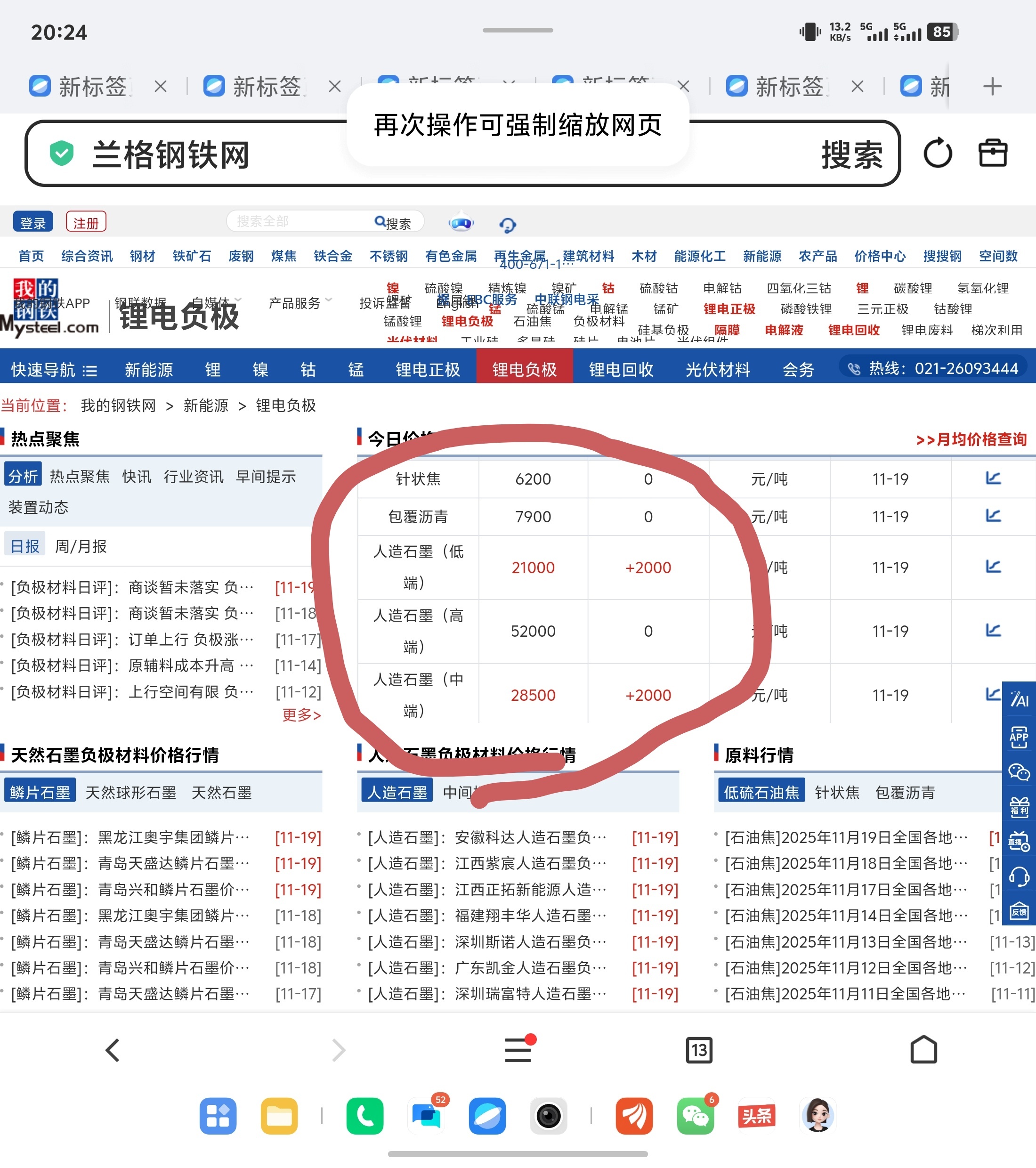 中低端石墨负极涨价了10%(来自我的钢铁网),今天割肉的小三还好吗哈哈
