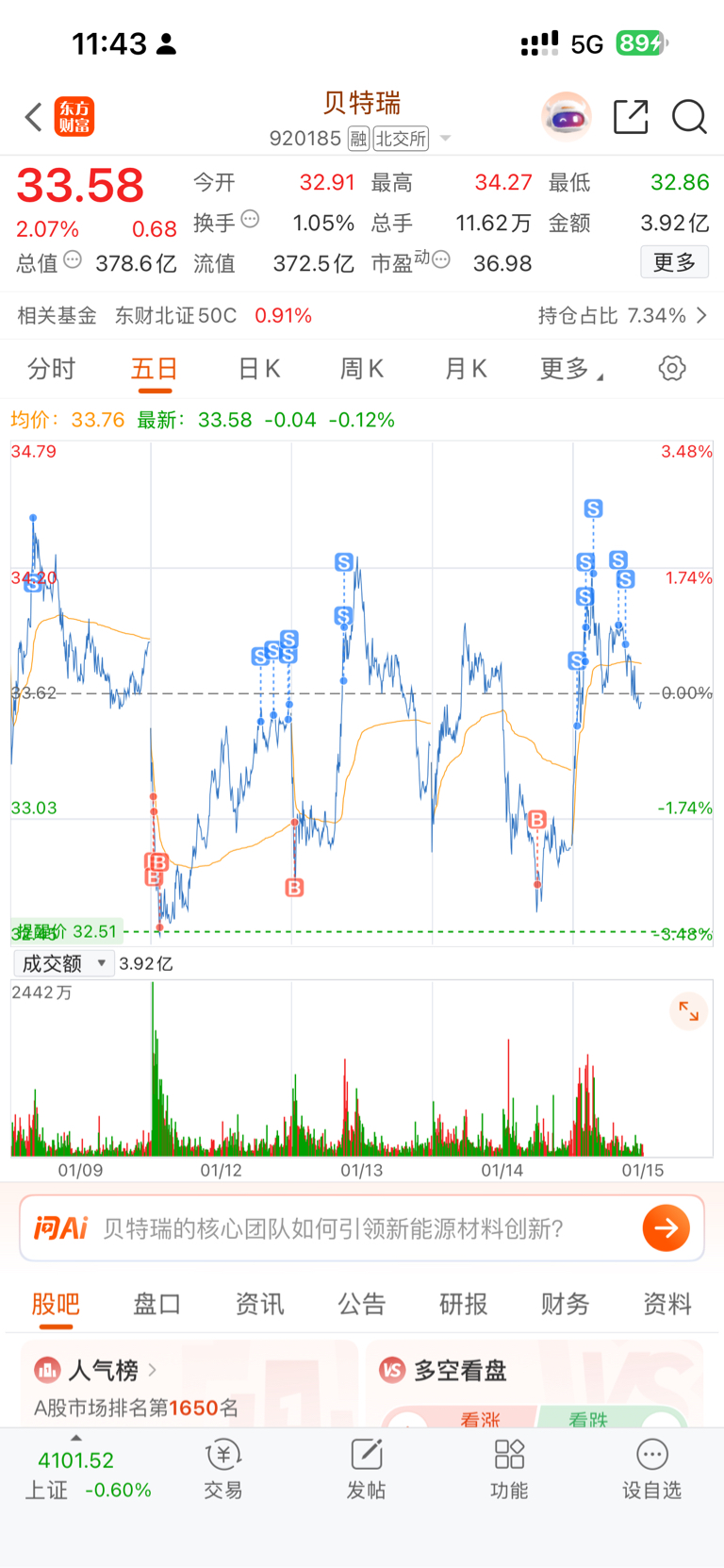 $贝特瑞(SZ920185)$ 真墨迹清了下周再来