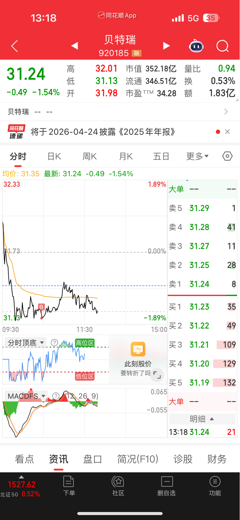 $贝特瑞(SZ920185)$ 兄弟们别怕,我建仓了,80%会跌