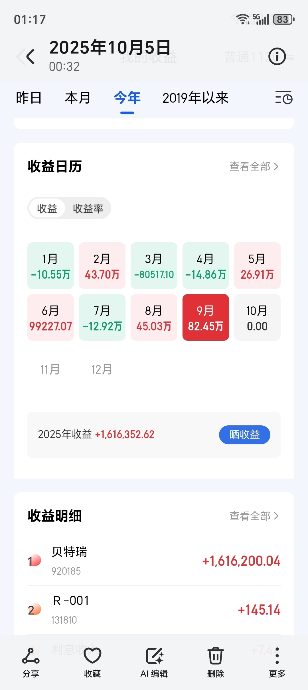 单调持有贝特瑞一年多,从亏损1百多万,又到赢利1百多万!每一份的坚守,都总没让人