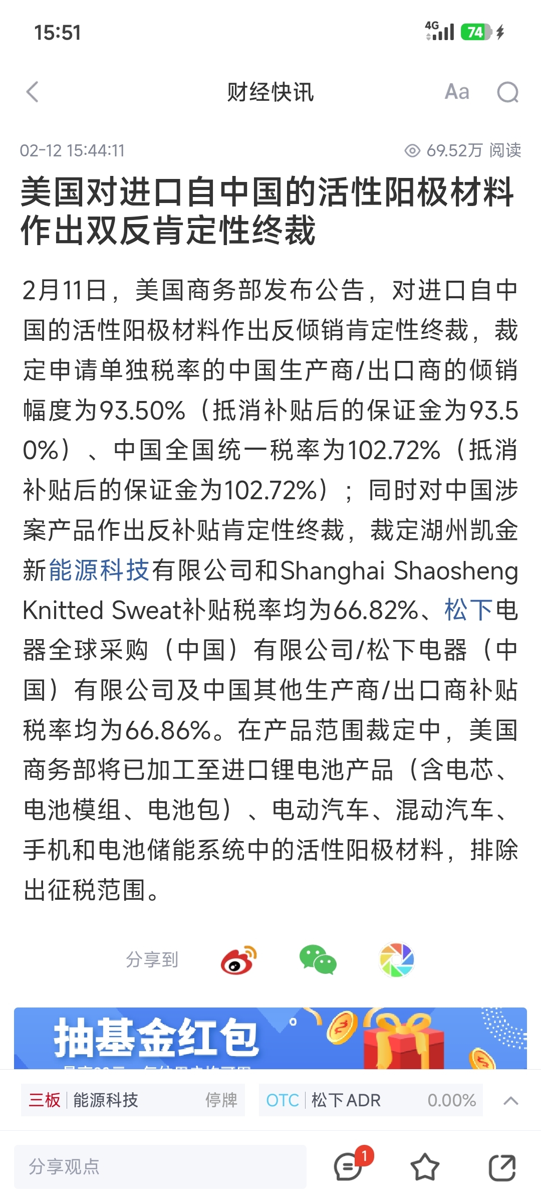 下午突然地拉红原因是这个吧。美国说的活性阳极材料就是贝特瑞生产的负极材料。