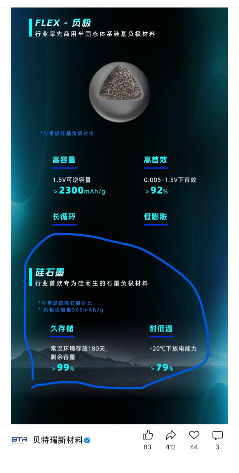 $贝特瑞(SZ920185)$ 贝特瑞去年发的这个耐极寒的特点,和比亚迪二代刀片电池-20度的充电表现一对造,结果不就不言而喻?