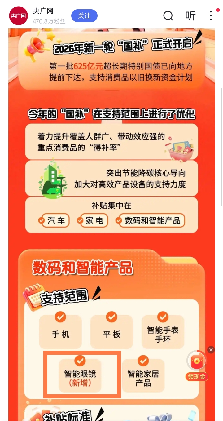 今日消息,上海国补范围增加智能眼镜!