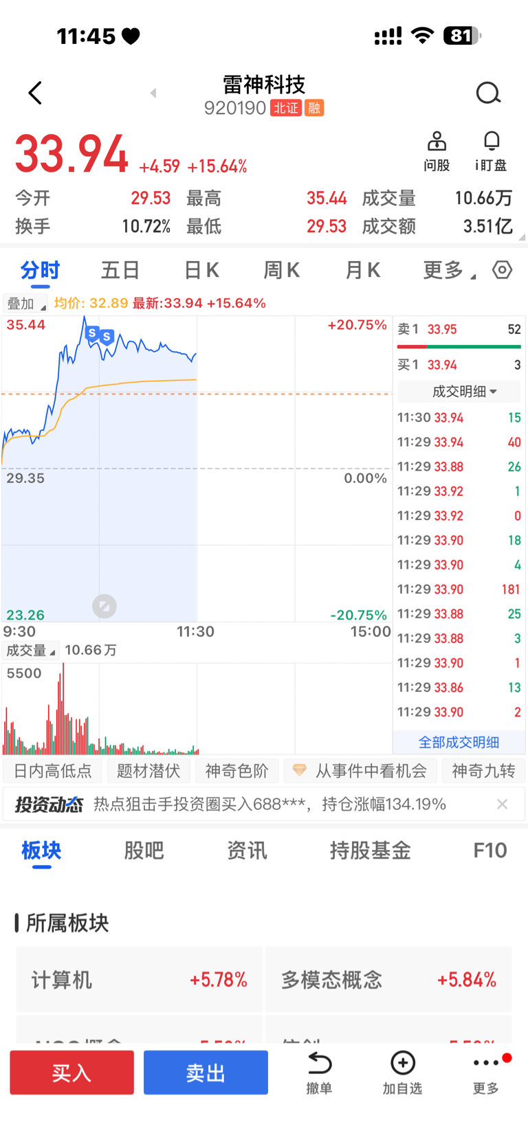 $雷神科技(SZ920190)$ 我先撤了,留下的兄弟明天吃个涨停板!