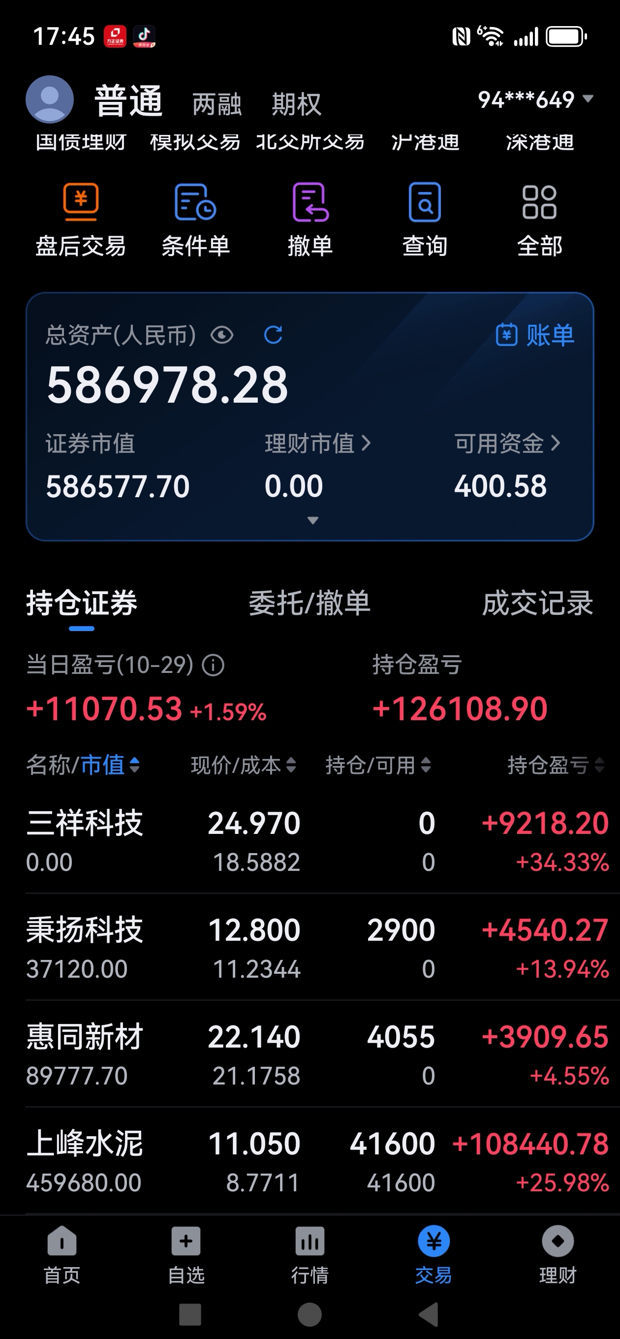 三祥涨十多点卖了,赚了一点小钱,进了惠同新材与秉扬科技。