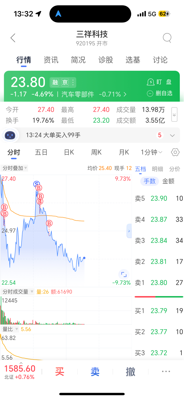 上午把禾昌卖了加了三祥虽然没加到最低点有点可惜但是还是看好三祥后续走势的上市以来