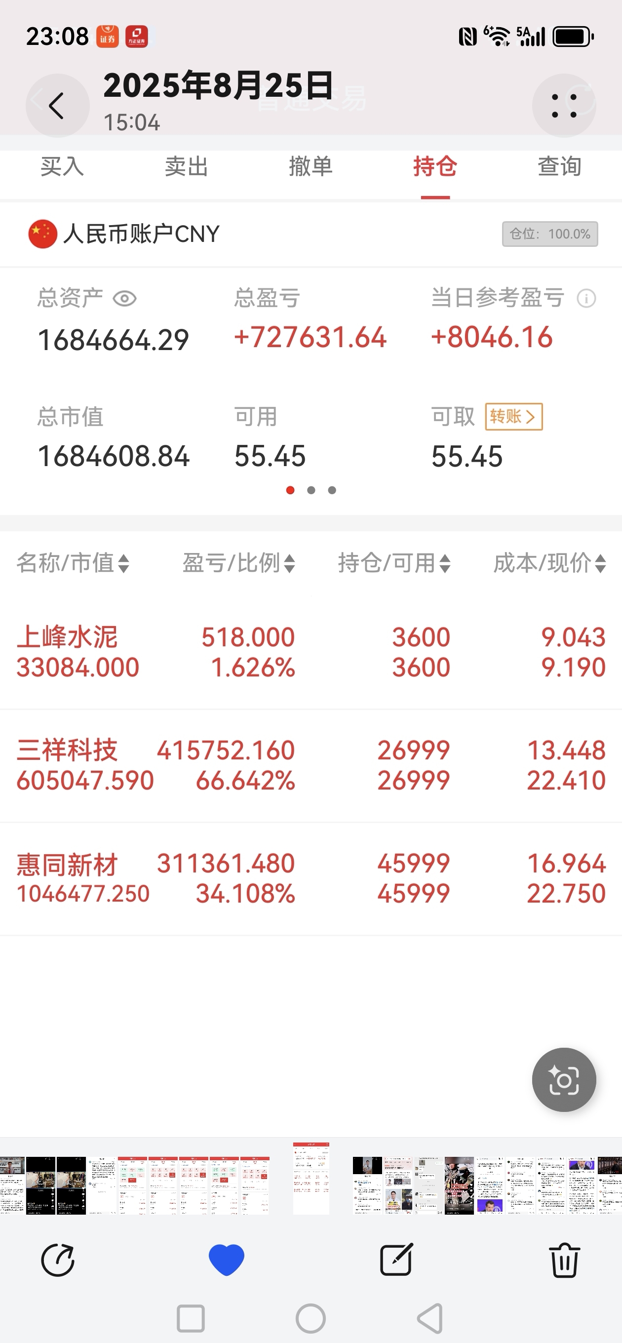 $三祥科技(SZ920195)$ $北证50(SZ899050)$ 三祥科技这三年己炒过三轮,在别的股赚钱了,再回买三祥,博最后补涨,北交每次来行情最后一个涨的是三祥,再卖出休息!北交所不出市值申购新股的政策,赚钱就出来,等北交低迷无信心再进!个人在北交所炒了十多只股从没失手过,经历之谈。之前个人交易帐户当时记录,个人策略不推荐股票。
