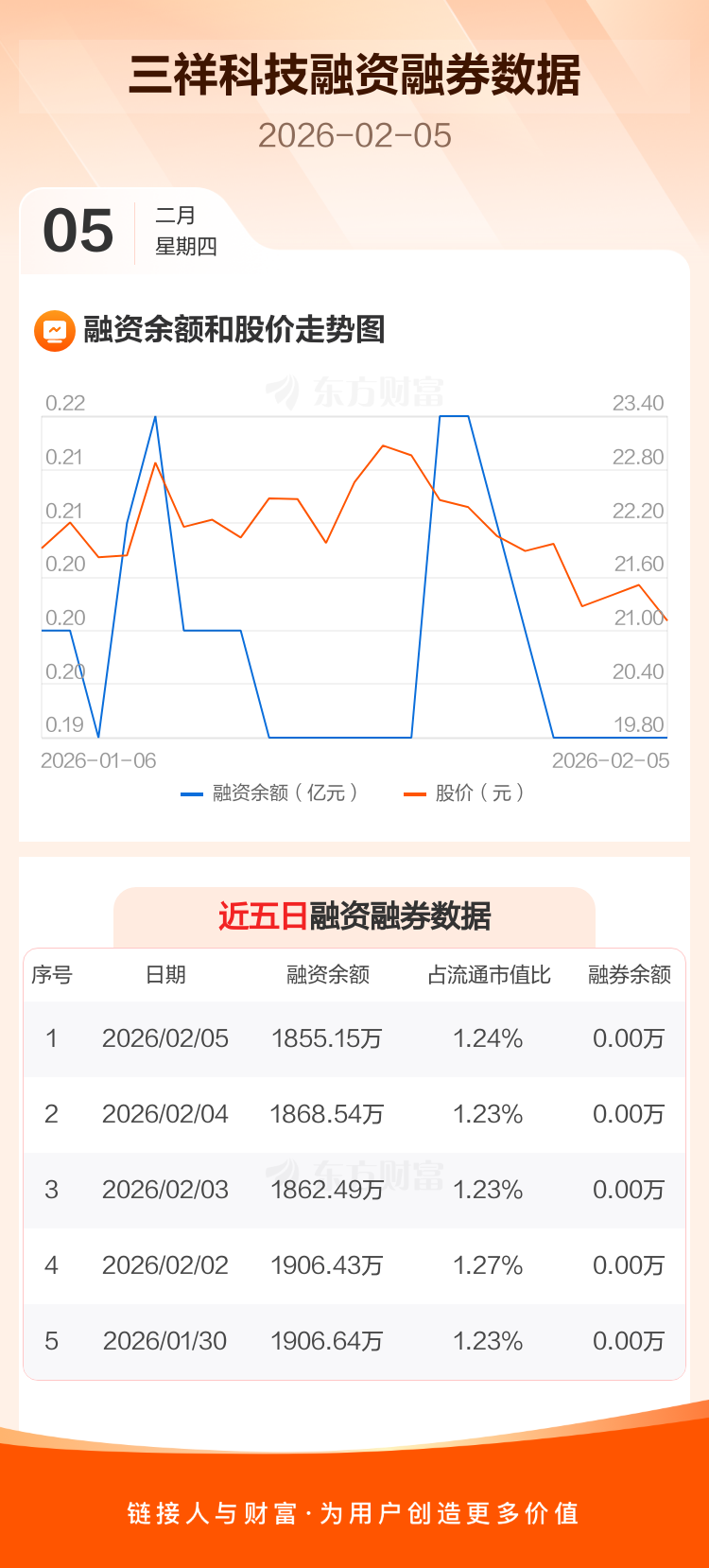 交易所最新数据显示,三祥科技于2026年2月5日获融资买入35.50万元,融资偿还48.89万元,当日融资净偿还13.39万元。目前,该股融资余额1855.15万,占流通市值比例为1.24%。