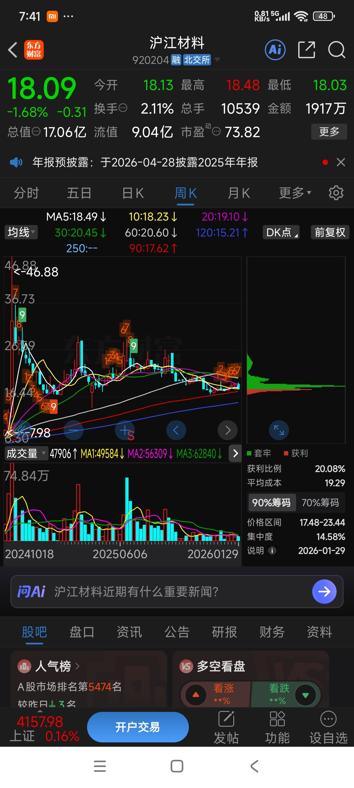 沪江材料:铝塑膜+铜箔/铝箔+锂电池/固态电池+高位调整61% 。低位放量砸盘,还怕就别再炒股了 !