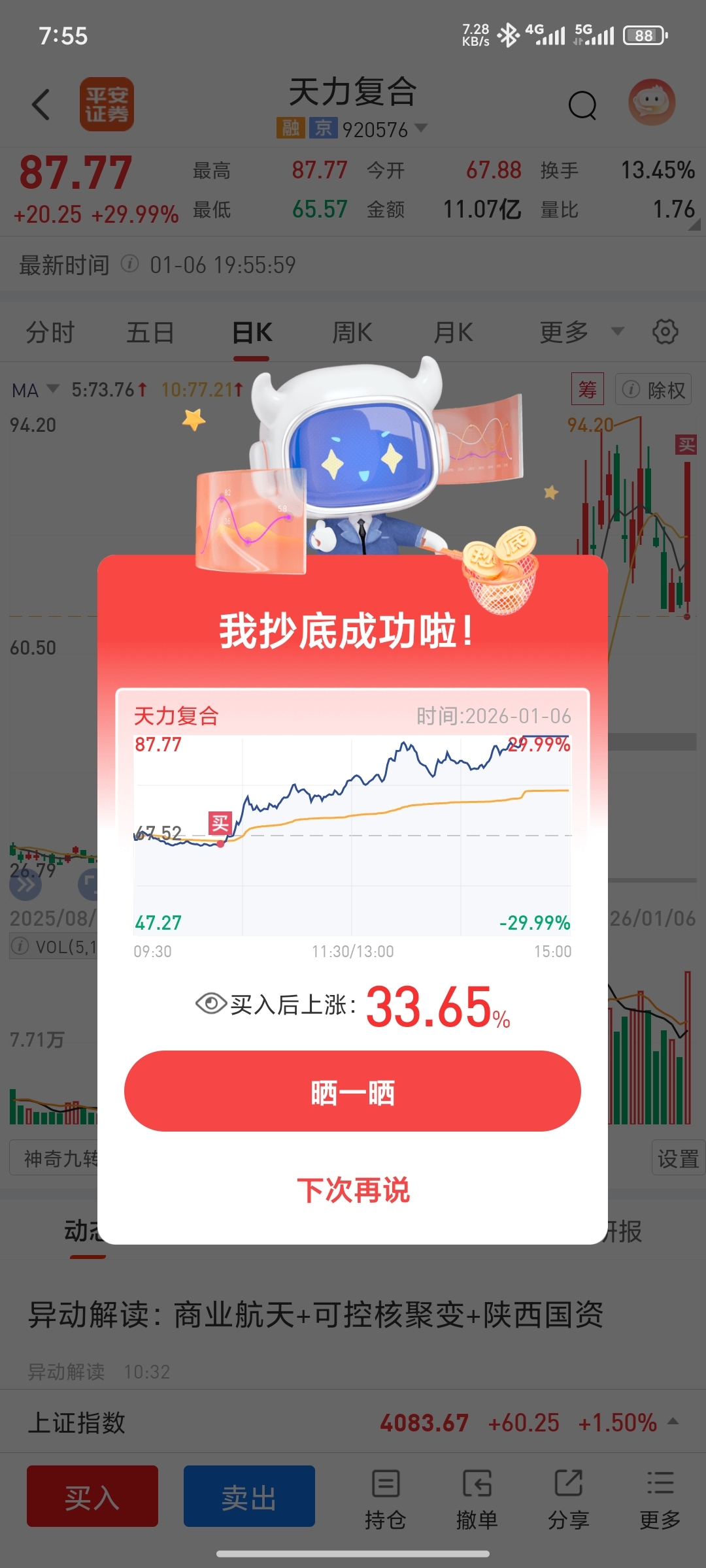 虽然卖飞,但非常感谢众诚和天力,祝留下的兄弟发财