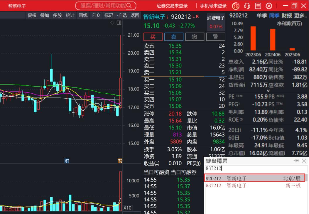 北交所公司证券代码都调整为920开头。k线、交易要用920212做检索了,要不然