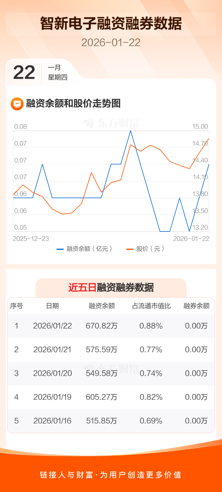 交易所最新数据显示,智新电子于2026年1月22日获融资买入266.77万元,融资偿还171.54万元,当日融资净买入95.23万元。目前,该股融资余额670.82万,占流通市值比例为0.88%。