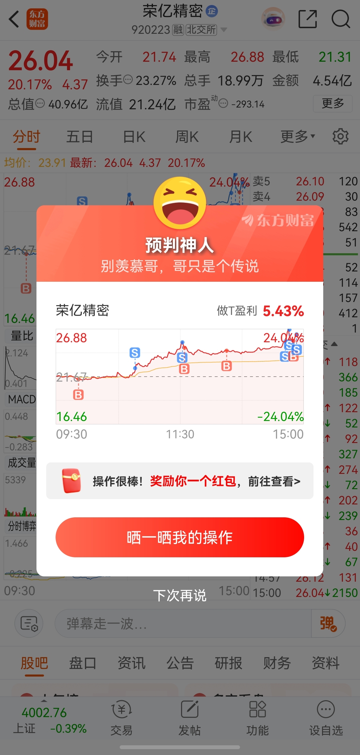$荣亿精密(SZ920223)$ 跑了你们继续