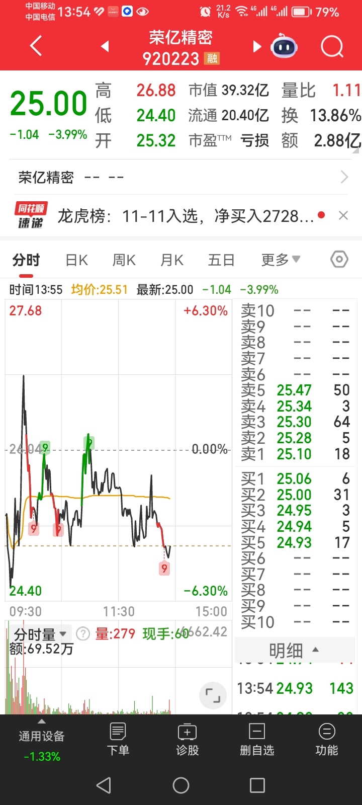 $荣亿精密(SZ920223)$ $荣亿精密(920223)$ 空头衰竭无力,果断补仓,洗盘结束。