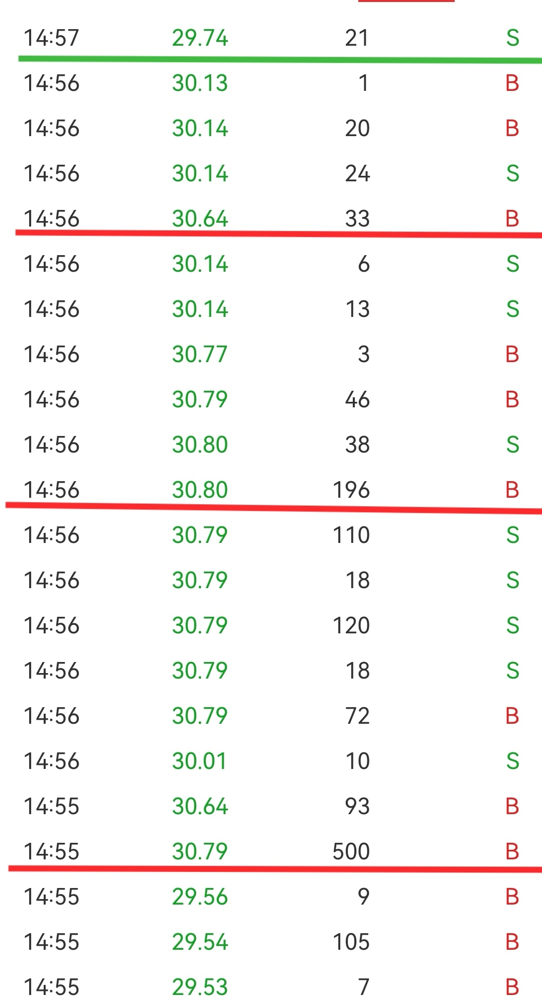 图一苟砸那几单把形态砸坏了,图二最后一两分钟迅速拉起,眼看就守住形势了,却在最后一刻出现个29.74的小卖单,这单这人最溅
