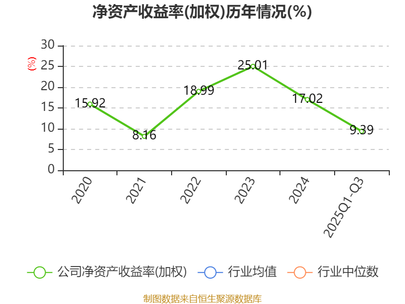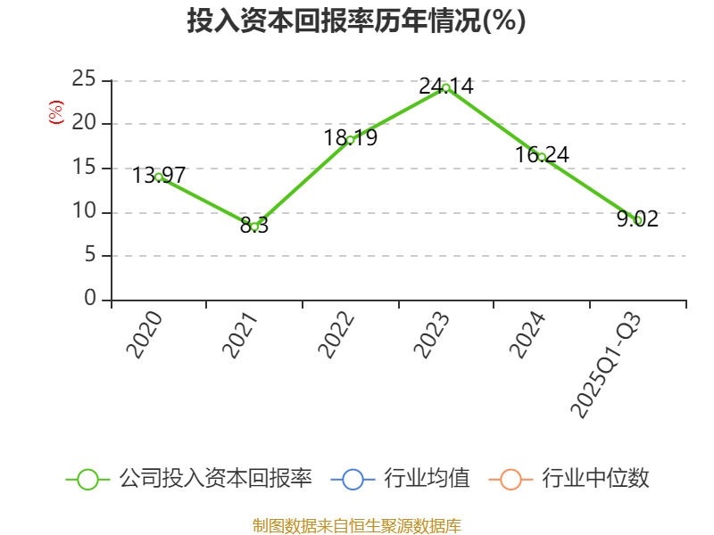 盈利能力方面, 2025年前三季度公司加权平均净资产收益率为9.39%,同比下降1.83个百分点。公司2025年前三季度投入资本回报率为9.02%,较上年同期下降1.68个百分点。