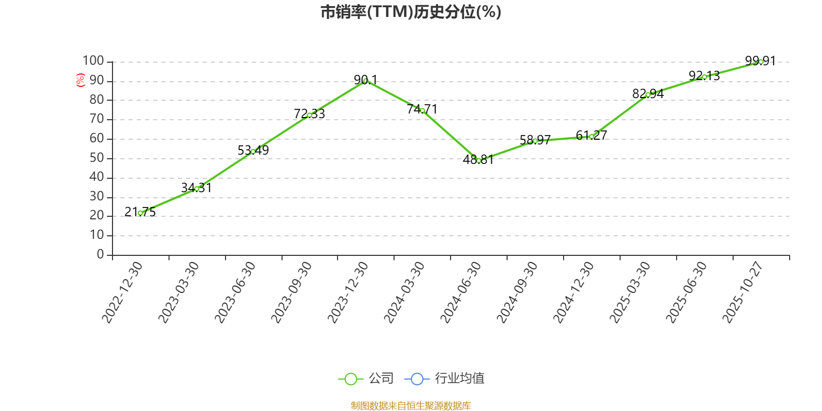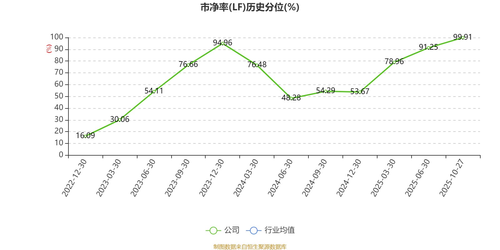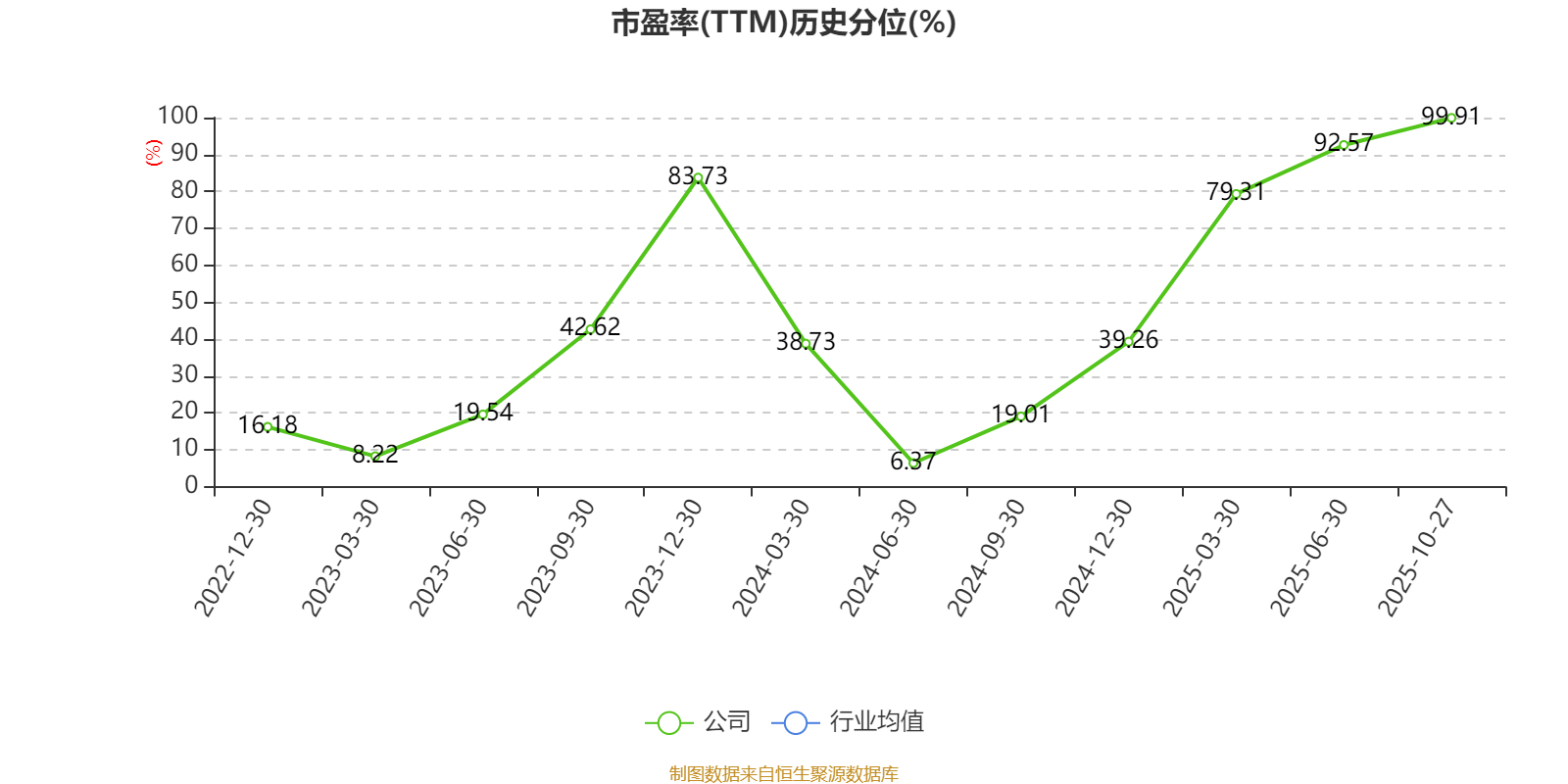 市盈率、市净率为负时,不显示当期分位数,会导致折线图中断。
