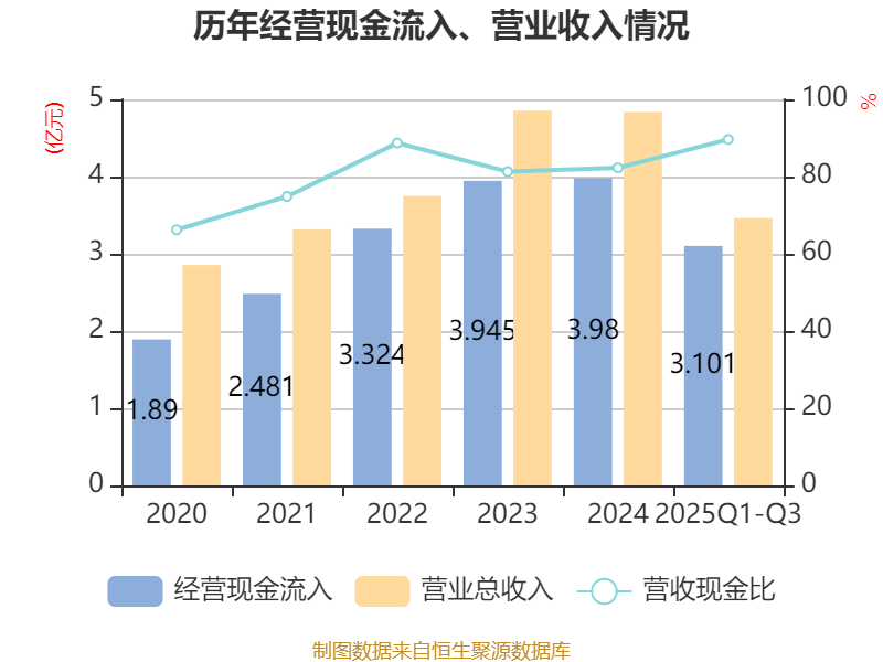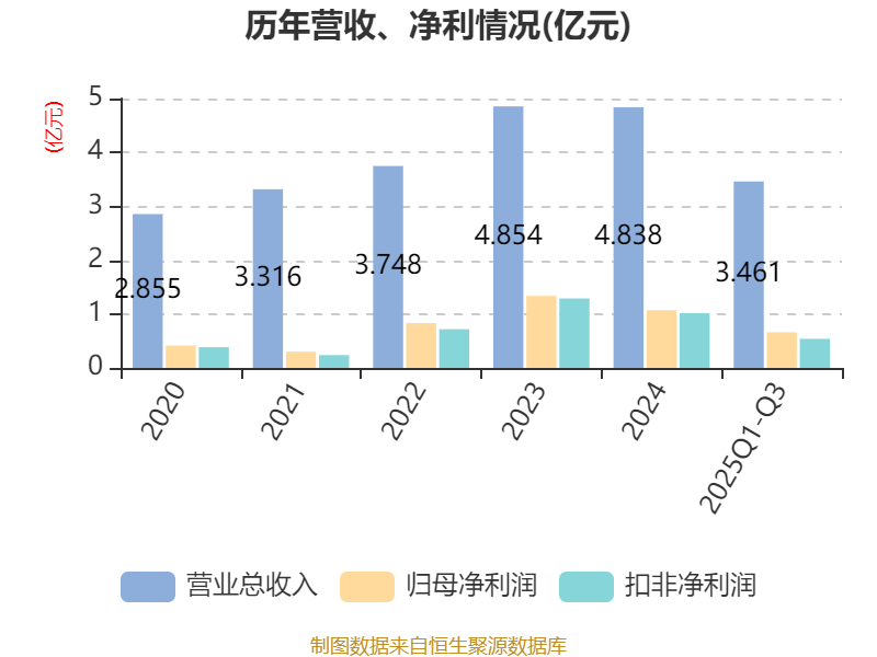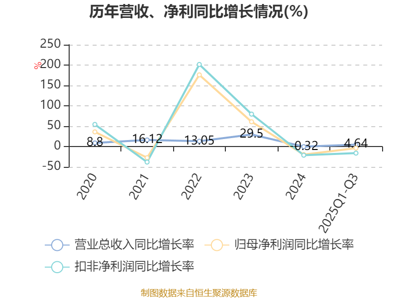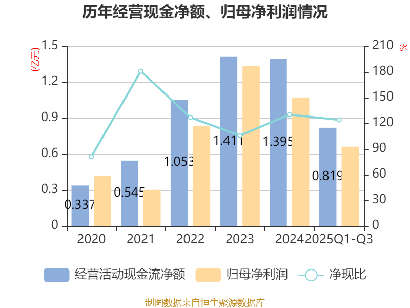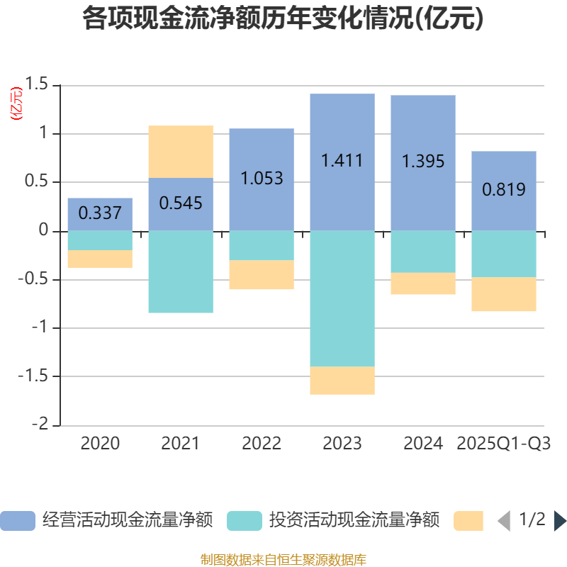 2025年前三季度,公司经营活动现金流净额为8192.07万元,同比下降2.37%;筹资活动现金流净额-3476.03万元,同比减少1254.12万元;投资活动现金流净额-4792.29万元,上年同期为-3664.71万元。