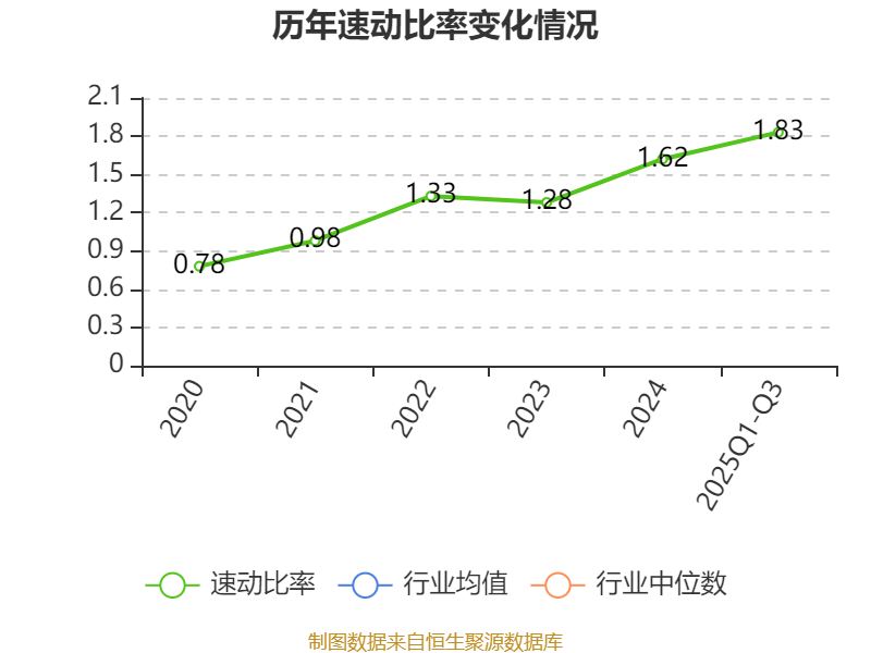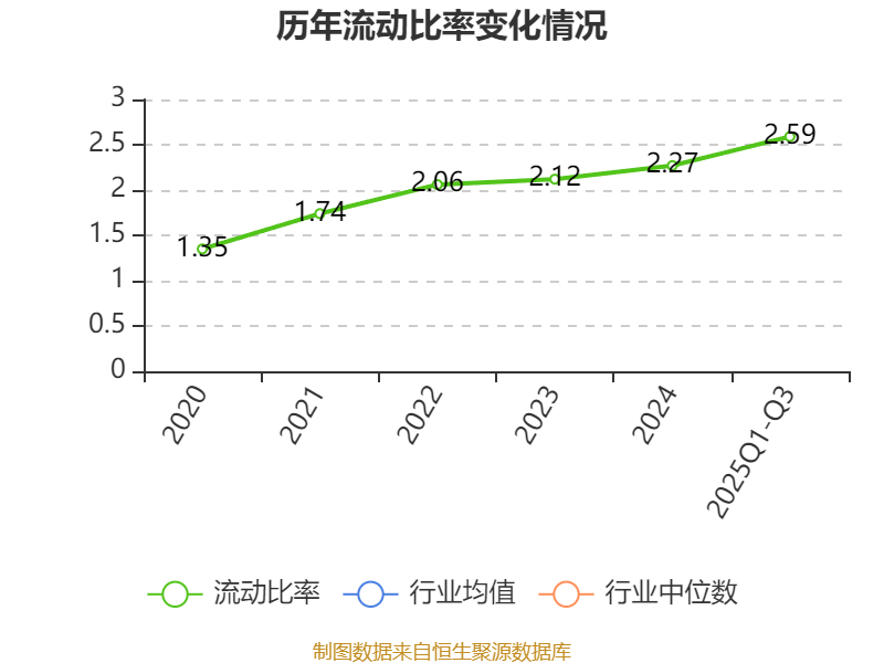 2025年前三季度,公司流动比率为2.59,速动比率为1.83。