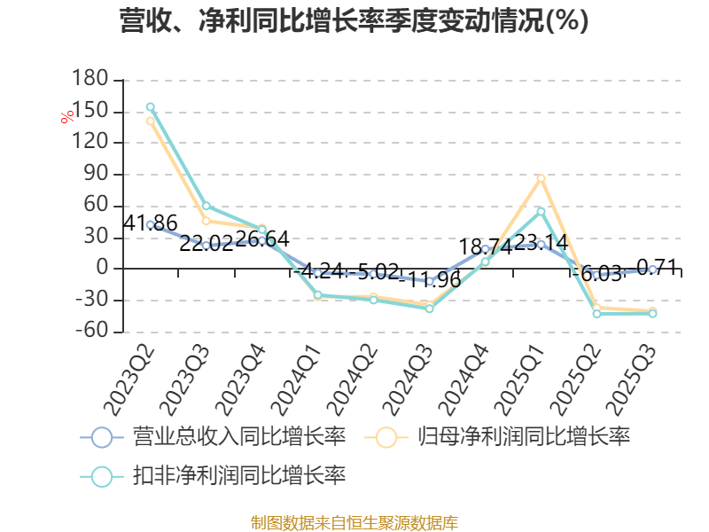 资产重大变化方面,截至2025年三季度末,公司其他非流动资产较上年末增加29.89%,占公司总资产比重上升2.54个百分点;应收票据及应收账款较上年末减少7.11%,占公司总资产比重下降1.46个百分点;固定资产较上年末减少1.77%,占公司总资产比重下降1.23个百分点;使用权资产较上年末减少40.59%,占公司总资产比重下降0.62个百分点。