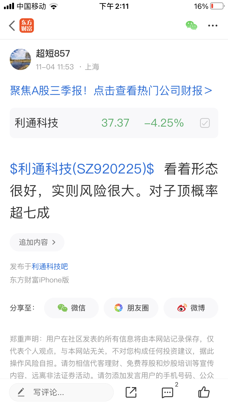 温馨提示: 1.根据《证券法》规定,禁止编造、传播虚假信息或者误导性信息,扰乱证券市场;2.用户在本社区发表的所有资料、言论等仅代表个人观点,与本网站立场无关,不对您构成任何投资建议。用户应基于自己的独立判断,自行决定证券投资并承担相应风险。《东方财富社区管理规定》