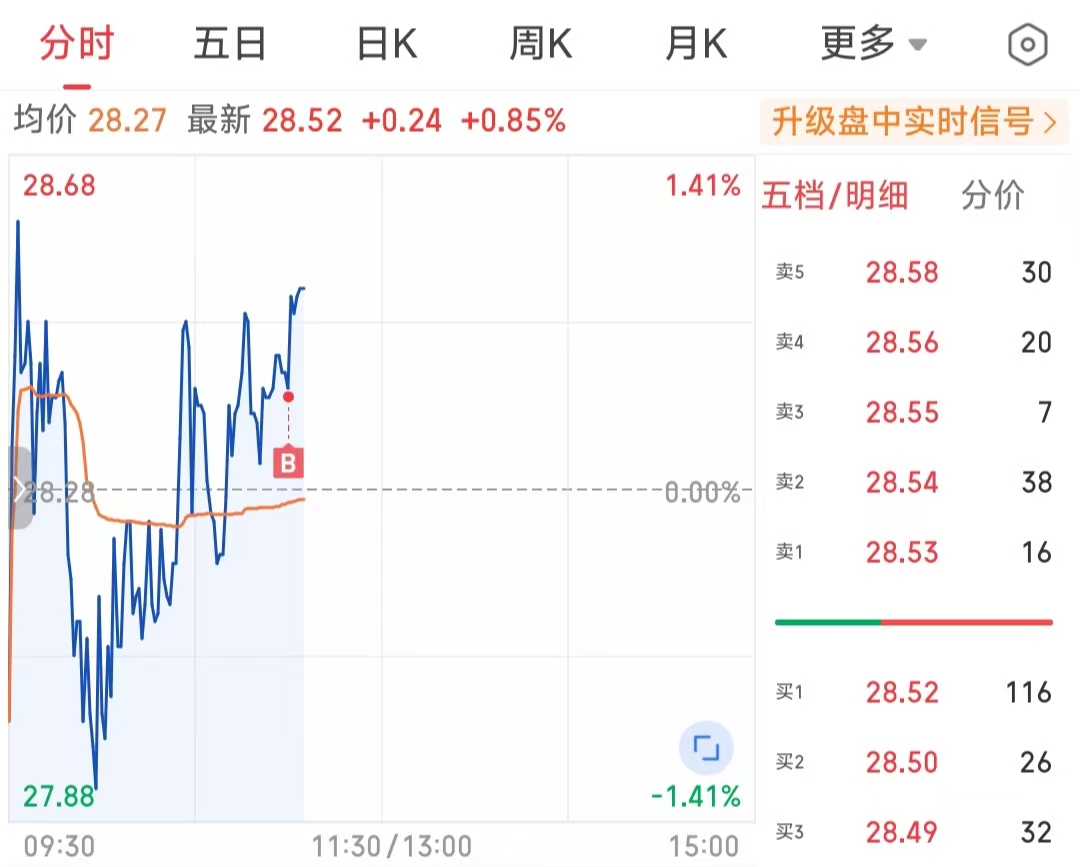 上周五33附近跑的,28.4打个差价捡回来、再做次短线吧