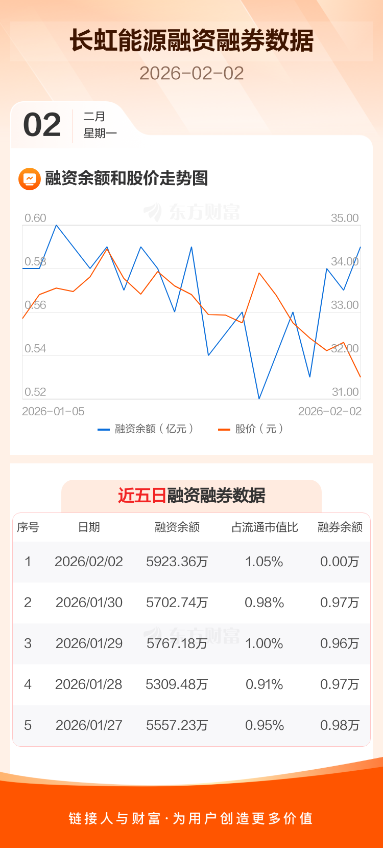 交易所最新数据显示,长虹能源于2026年2月2日获融资买入522.85万元,融资偿还302.23万元,当日融资净买入220.62万元。目前,该股融资余额5923.36万,占流通市值比例为1.05%。