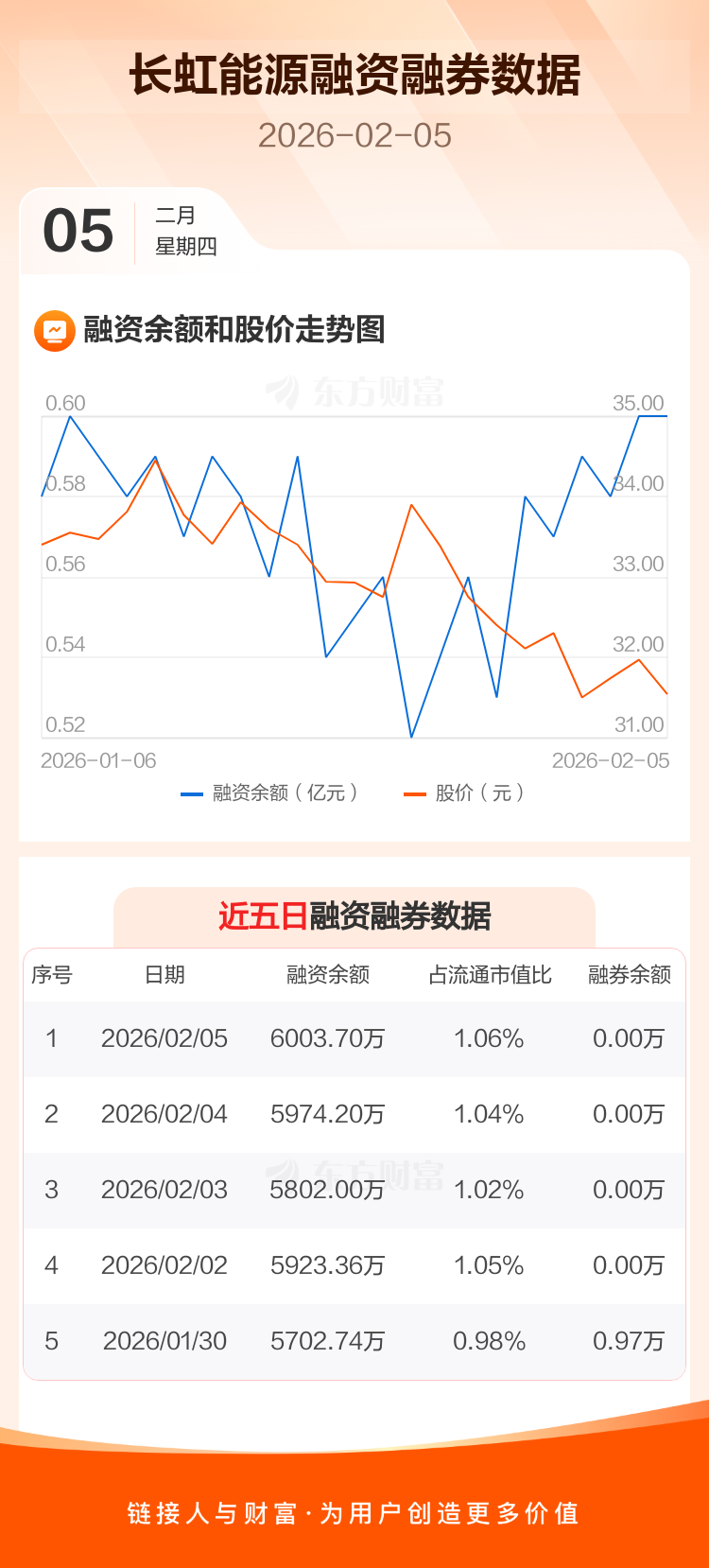 交易所最新数据显示,长虹能源于2026年2月5日获融资买入155.49万元,融资偿还125.99万元,当日融资净买入29.5万元。目前,该股融资余额6003.70万,占流通市值比例为1.06%。