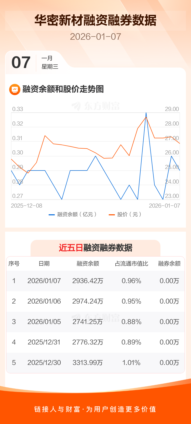华密新材:融资净偿还37.82万元,融资余额2936.42万元