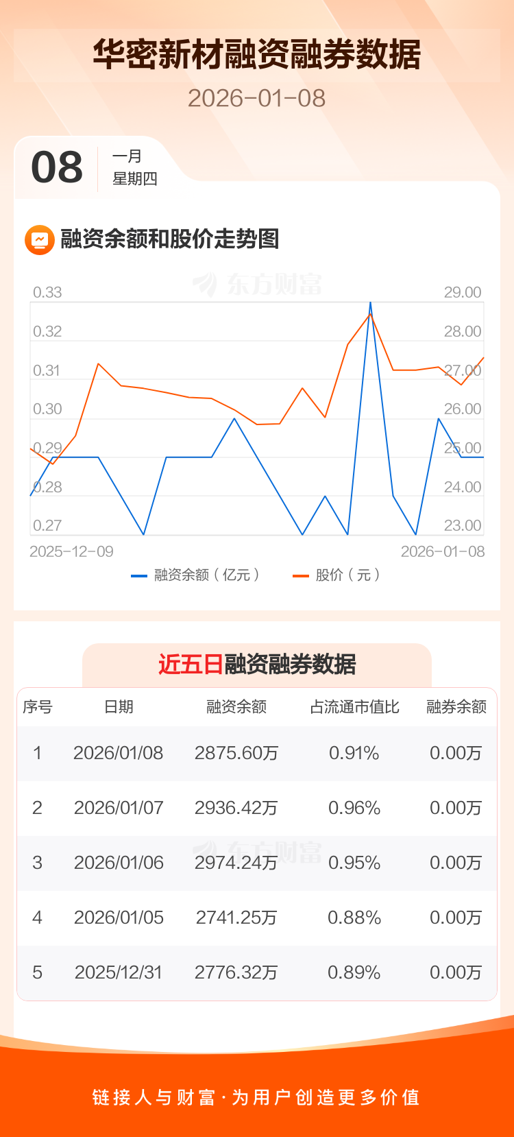 华密新材:融资净偿还60.82万元,融资余额2875.6万元