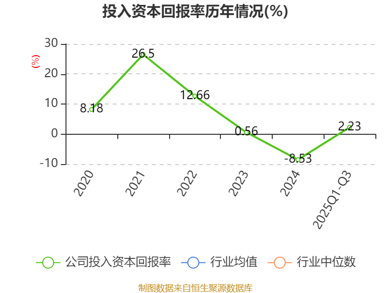 盈利能力方面, 2025年前三季度公司加权平均净资产收益率为2.44%,同比上升8.79个百分点。公司2025年前三季度投入资本回报率为2.23%,较上年同期上升5.71个百分点。