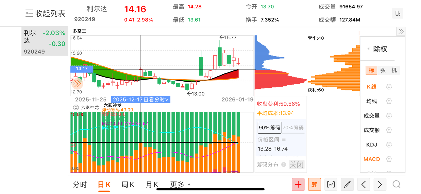 $利尔达(SZ920249)$ 这是要回踩14.17今天又是散户流入的一天