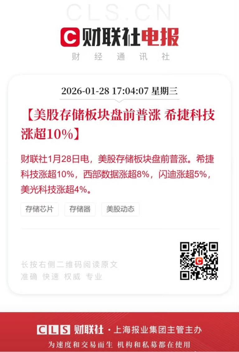 美股存储板块盘前普涨!