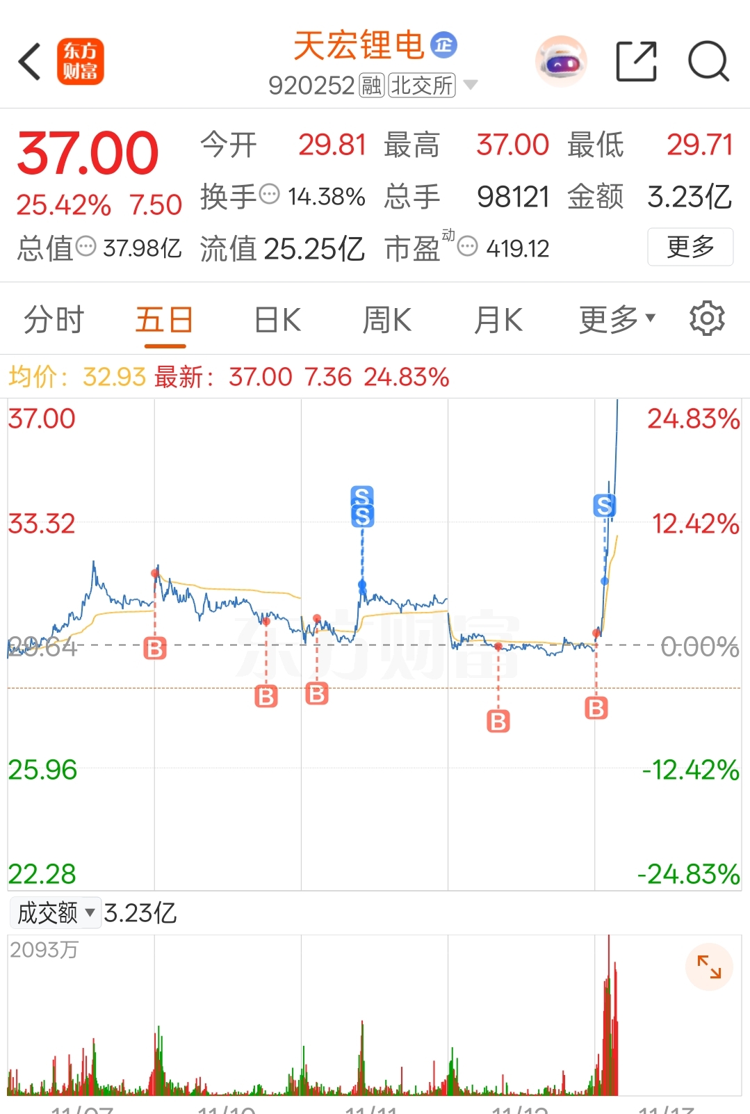 $天宏锂电(SZ920252)$ 兄弟们,涨停,哈哈哈