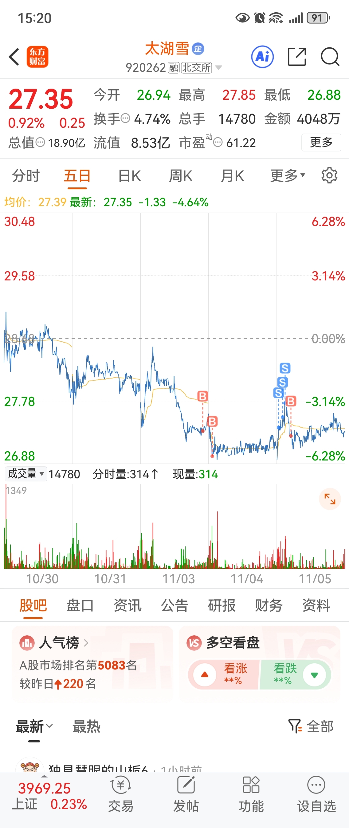 $太湖雪(SZ920262)$ 我这才来了几天,感觉就这样跑路有点不甘心,继续做T等一个大阳线