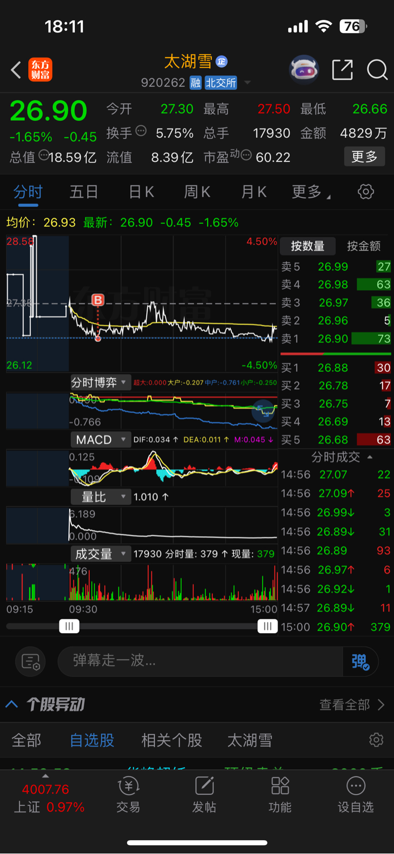 $太湖雪(SZ920262)$ 下周北交所四周年,你这北交唯一的被子股还不快点给北交送送温暖呀