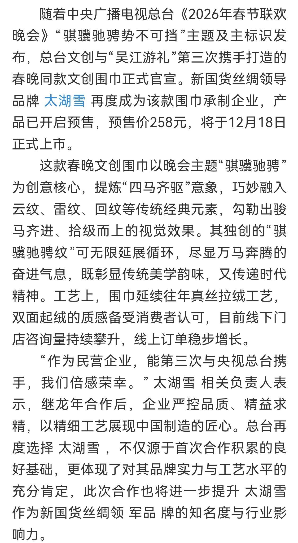 $太湖雪(SZ920262)$ 春晚文创围巾