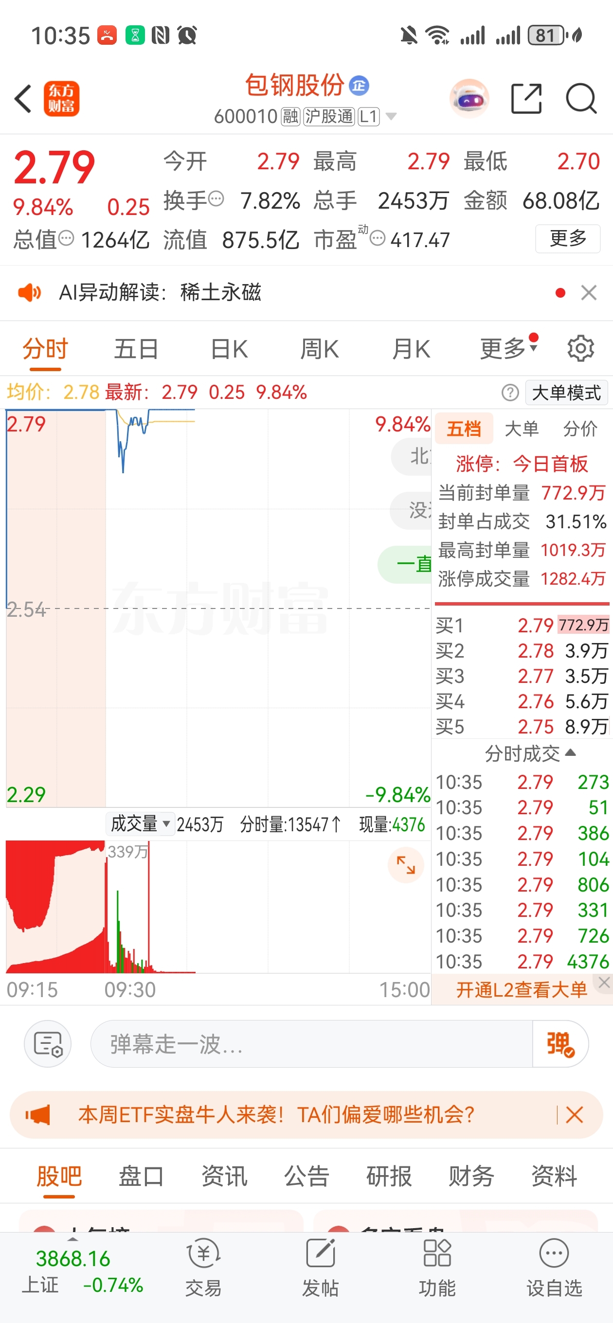 $中航泰达(SZ920263)$ 包钢这么强势!!!你在墨迹什么?