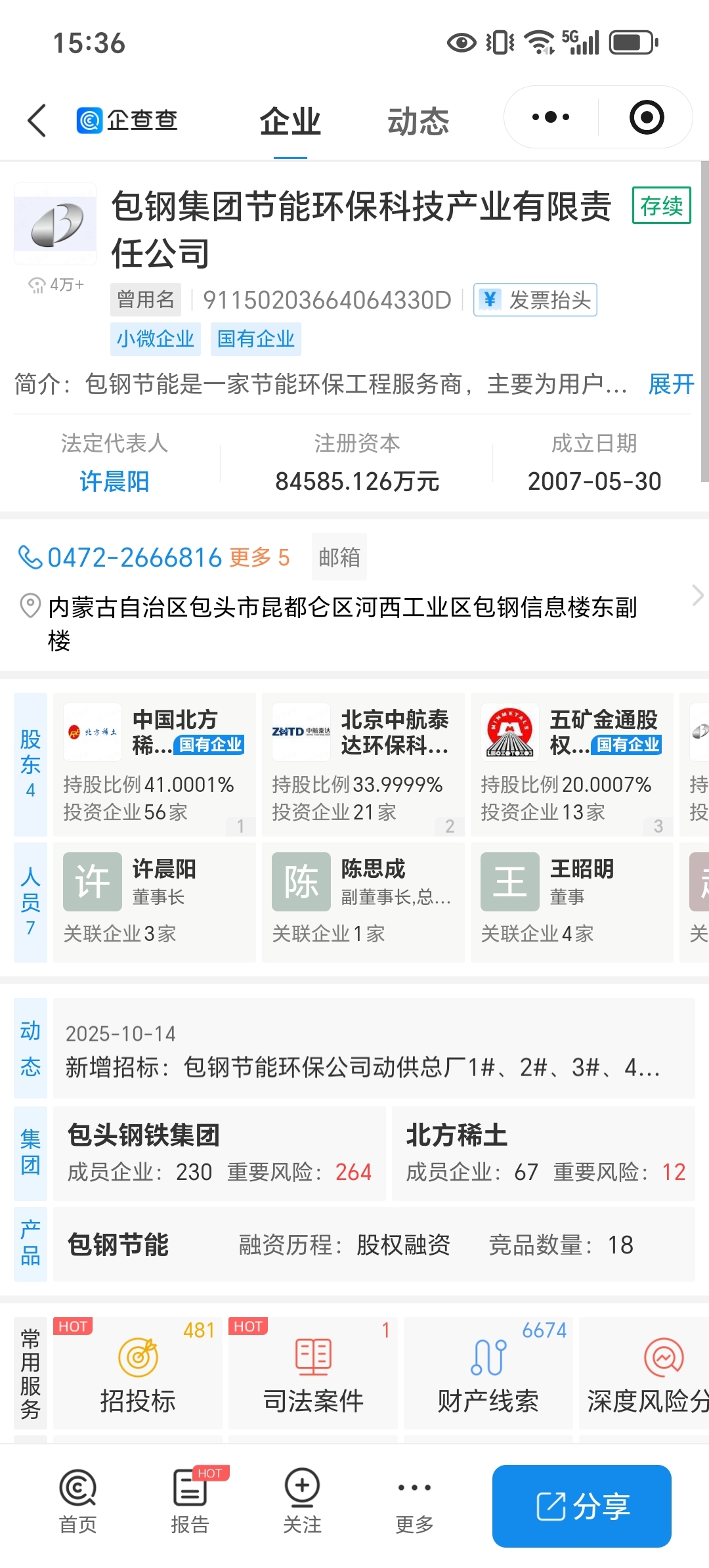 中航泰达,出资2.8亿元,参股了:内蒙古包钢泰达环保科技有限公司的34%股权,第