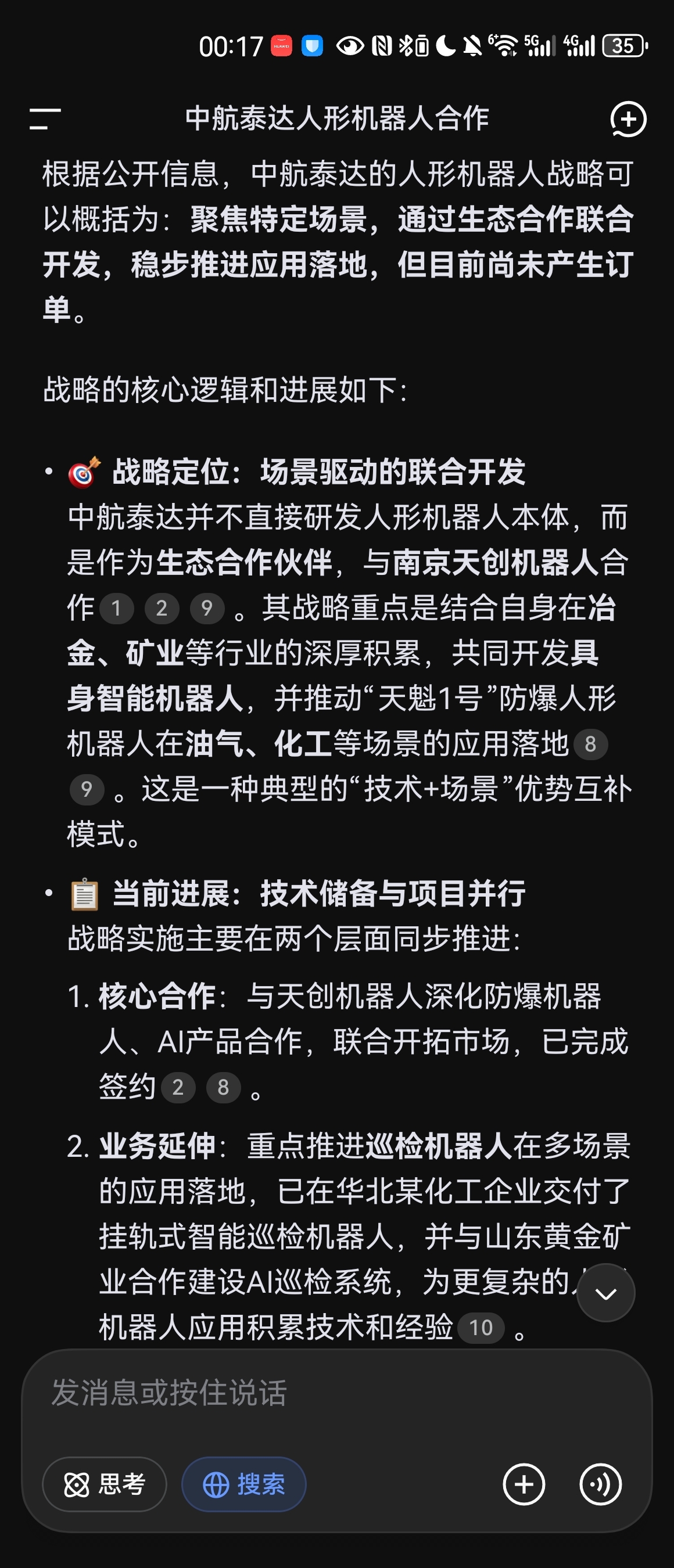 $中航泰达(SZ920263)$ 中航泰达布局人形机器人赛道,已在华北某化工企业交付了智能巡检机器人。并且已经与山东黄金矿业合作建设AI 巡检系统。机器人+AI 双赛道