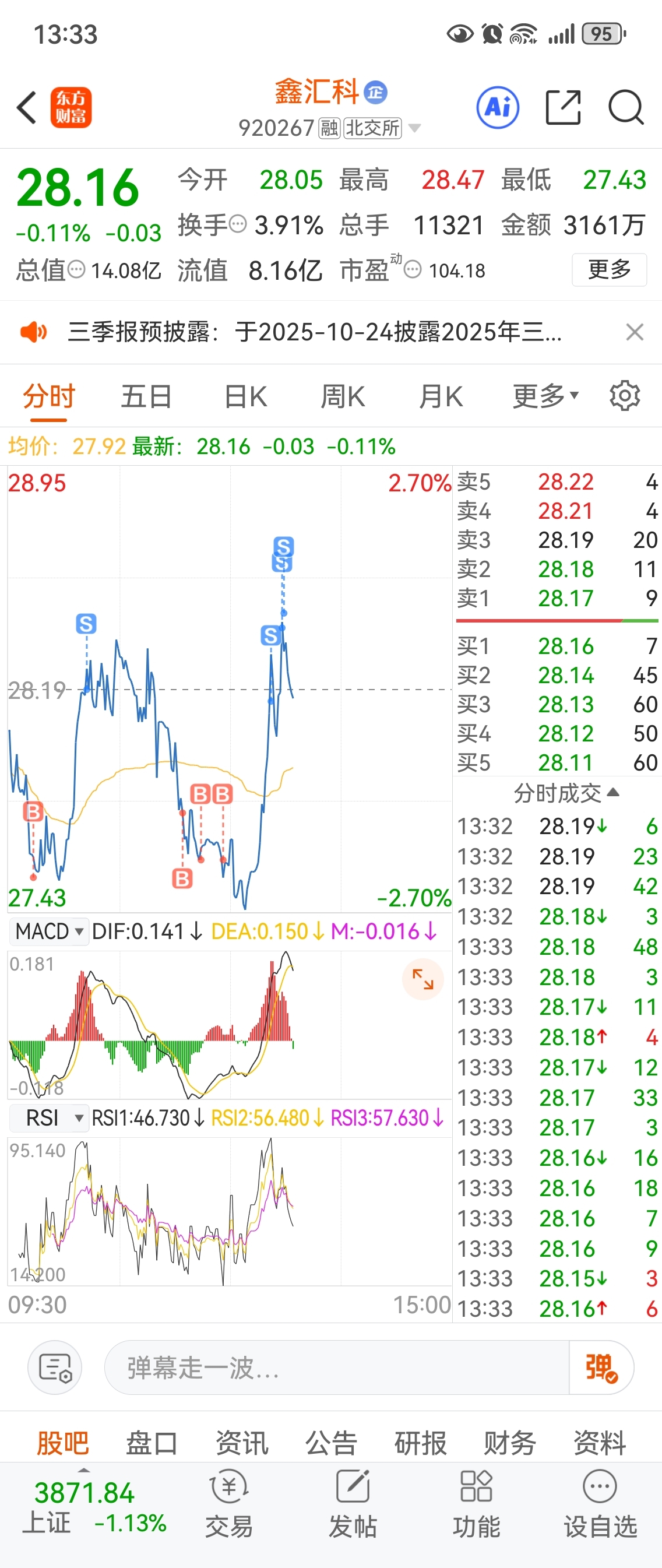 $鑫汇科(SZ920267)$ 太难了,为了避免自己低位跑路,只好把手里的活票变成卖不出去的S票